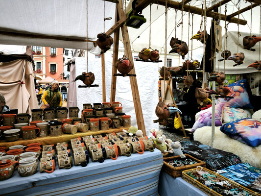 Direkt auf dem Marktplatz findet ein lustiges Treiben statt und wir schauen vom Cafe' aus zu.