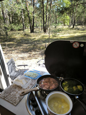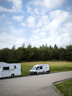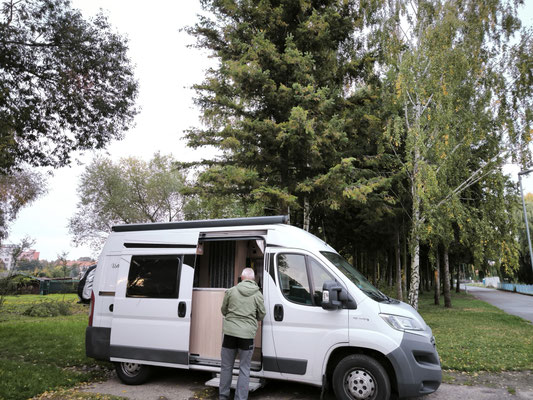Ja, und dann rollen wir zu einem Camping mit Badeanstalt, der eine Stunde entfernt ist. Doch der ist leider schon für dieses Jahr geschlossen. 😜