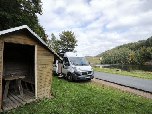 Wir fahren von Tschechien über Zinnwald/ Osterzgebirge, bevor es in Dresden auf die Autobahn geht. Es gibt unterwegs Kaffee und wir stellen fest, hier am Staubecken ist es auch schön. 🚌👍