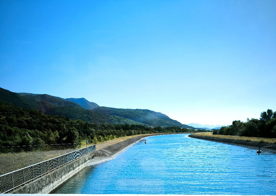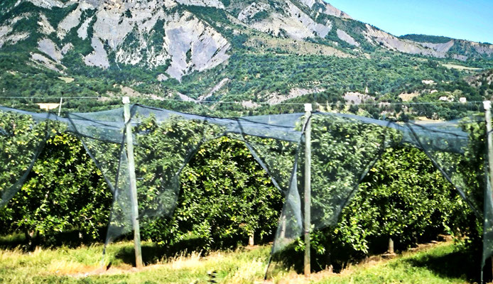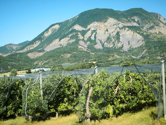 Unterwegs die Berge der Alpen im Hintergrund und dann als Kontrast die Obstanbaugebiete👍 und der Kanal.