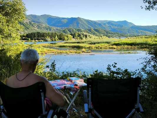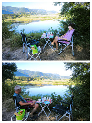 Wir entschließen uns, den Nachmittag am See zu verbringen. Wir brauchen den Wind und auch Schatten. Das klappt und die Stunden laufen dahin .... in dieser sehr angenehmen Umgebung. 😅