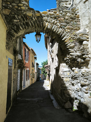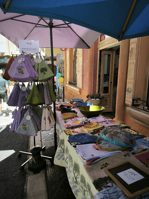 Und hier im Dorf Valensole stehen wir über Nacht auf dem Stellplatz mit noch anderen. Die Temperatur wurde zum Nachmittag wieder fast unerträglich und wir haben Glück mit einem Schattenplatz. Vorher bummelten wir aber noch durch die Gassen. Es gibt zahlreiche Lädchen mit Lavendel-Produkten. Auch die Restaurants sind gut besucht.