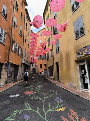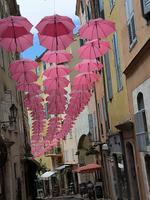Die Dekoration der Altstadtgassen mit den Regenschirmen taucht die Altstadt in ein rosa leuchtendes Licht.🪂