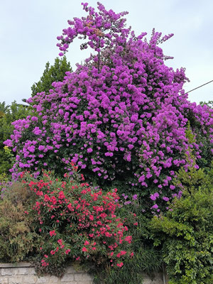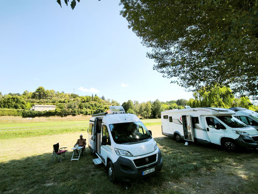 Na, das war gestern Abend noch spannend ... Im Nuh war der ganze Wander-Park-Platz oberhalb von Grasse zugefahren, denn was wir nicht wußten... Gegen 22.00 Uhr wurde in der Stadt unten das "National-Tag-Feuerwerk" gezündet.