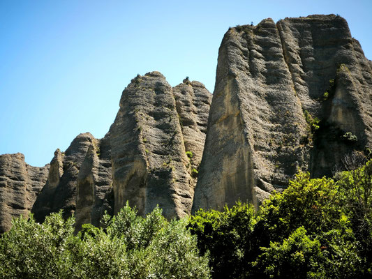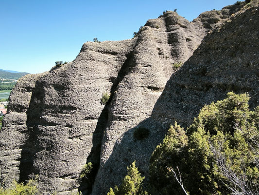 Es sind bizarre Felsformen, die sich weit sichtbar oberhalb des Dorfes erheben.