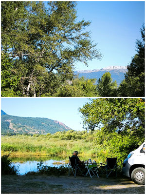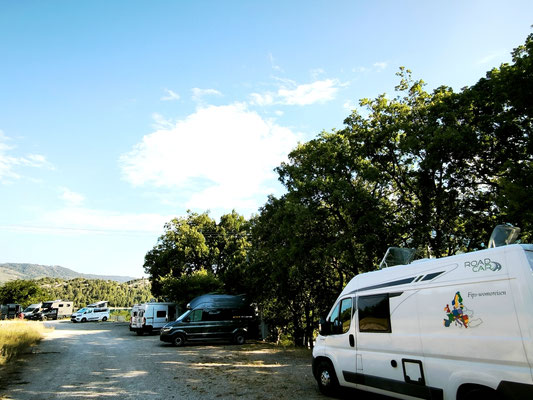 Wir liefen dort ein wenig umher, aber die vielen, sehr vielen Badehungrigen mit und ohne Boot und die lärmenden Autos auf den Parkplätzen waren der Grund, das wir zum naheliegenden Stellplatz des "Municipal Campings" fuhren. Dort suchten wir uns ein schattiges Fleckchen und beobachteten das Treiben aus reichlichem Abstand.