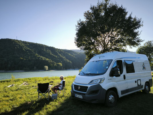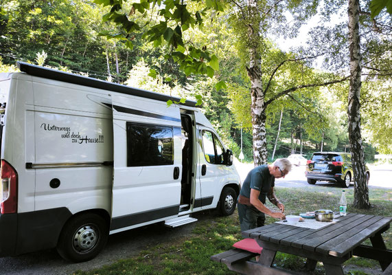 Na, gut, wir haben bei: "park4nigth" in der Nähe einen Seeplatz für unsere Übernachtung gefunden. Dort waren wir mit zwei Anglern ganz alleine. Die Zuwegung zum See (immer bergab) war etwas schwierig, aber wir sind ja "klein" und paßten durch die engen Wege. Hier ist das Übernachten erlaubt. 🌜