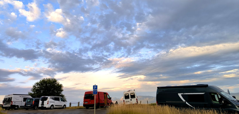 Jetzt zum Abend stehen doch tatsächlich fünf Campervans hier, die alle übernachten wollen auf dieser Anhöhe von ca. 1200 m.