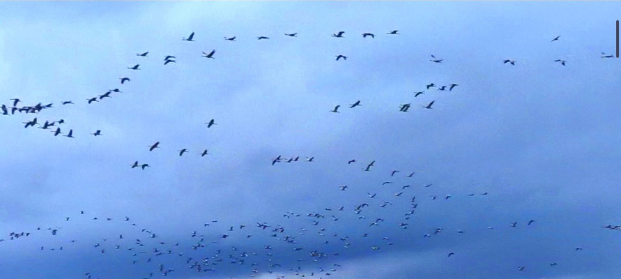 Bis zu 25 OOO Kraniche rasten im Herbst gleichzeitig in diesem Gebiet. Wahnsinn.