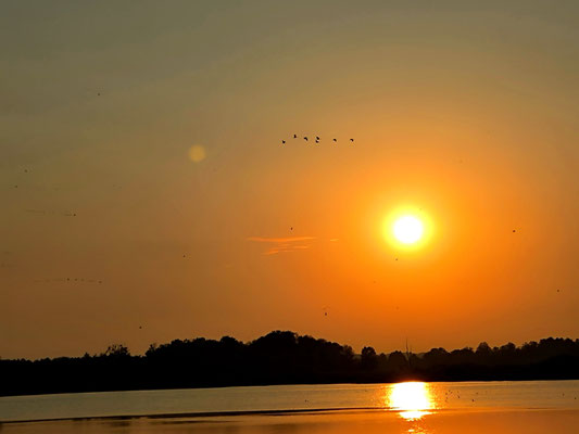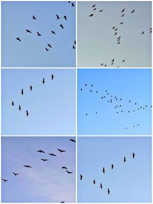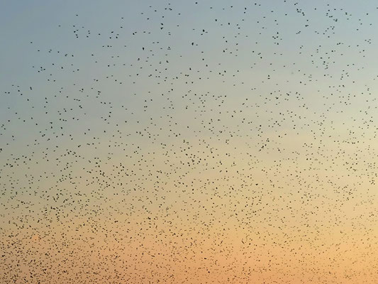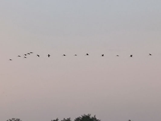 Sie kamen aus allen Richtungen zu ihren Übernachtungsplätzen an den See. Alle auf einmal. Wir denken, das der beginnende Sturm mit Regen der Grund war, weshalb dieser Anflug so kompakt war.