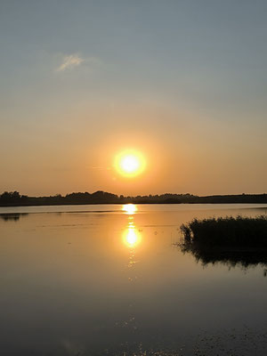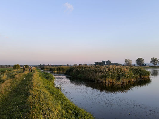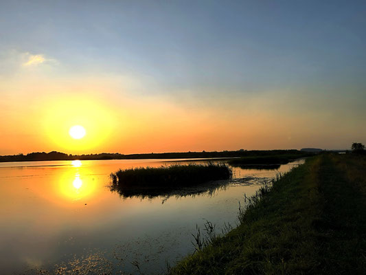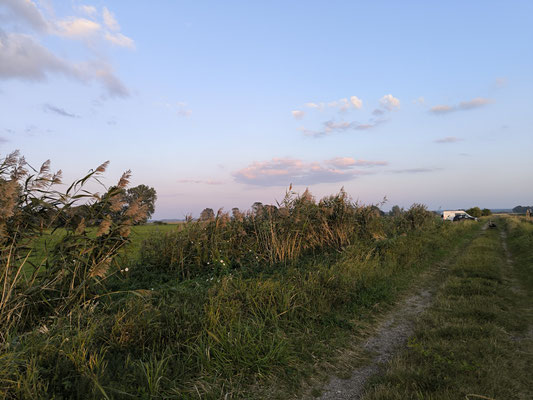 In Zempin am Fischerhafen durften wir dann an der Peene-Flußmündung ohne Verbot, ganz offiziell parken und genossen das "Stehen" tatsächlich, denn die Weite und das Sonnenspiel bis zum Spätnachmittag versöhnte uns wieder.