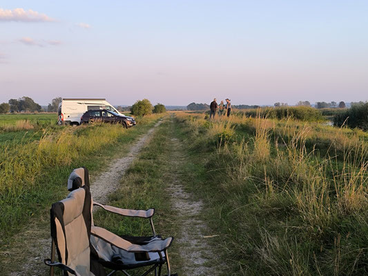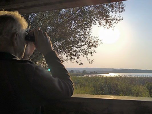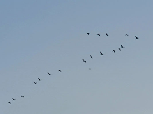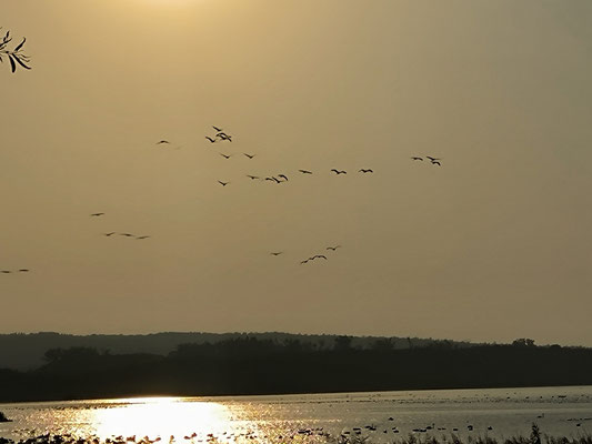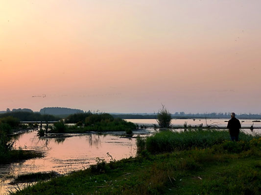 Wir suchten und fanden einige der Aussichtspunkte und Plattformen, von denen wir dann die einfliegenden Kraniche beobachten konnten.
