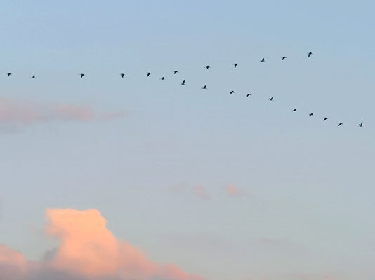 Und es kommt ein bisschen Wehmut auf, eine Art Abschied, die mich jedes Jahr befällt, wenn ich sie am Himmel ziehen sehe.